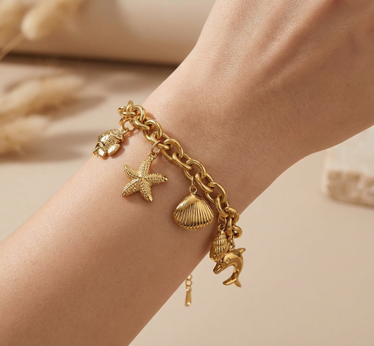 Stainless Steel Gold Seashell & Pearl Bracelet