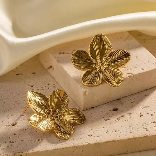 Stainless Steel Golden Flower Earring